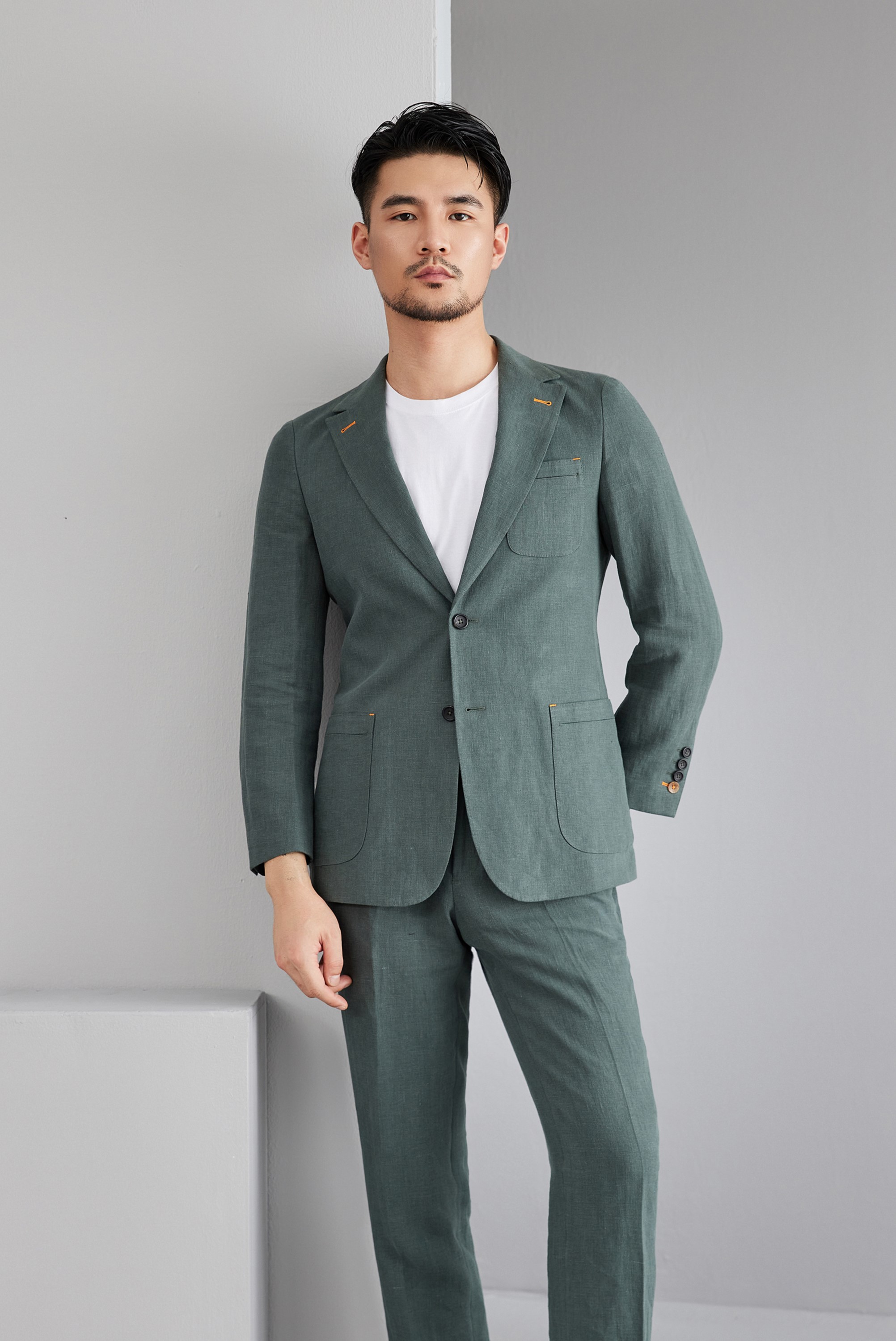 #YF0246 绿色亚麻布两件套