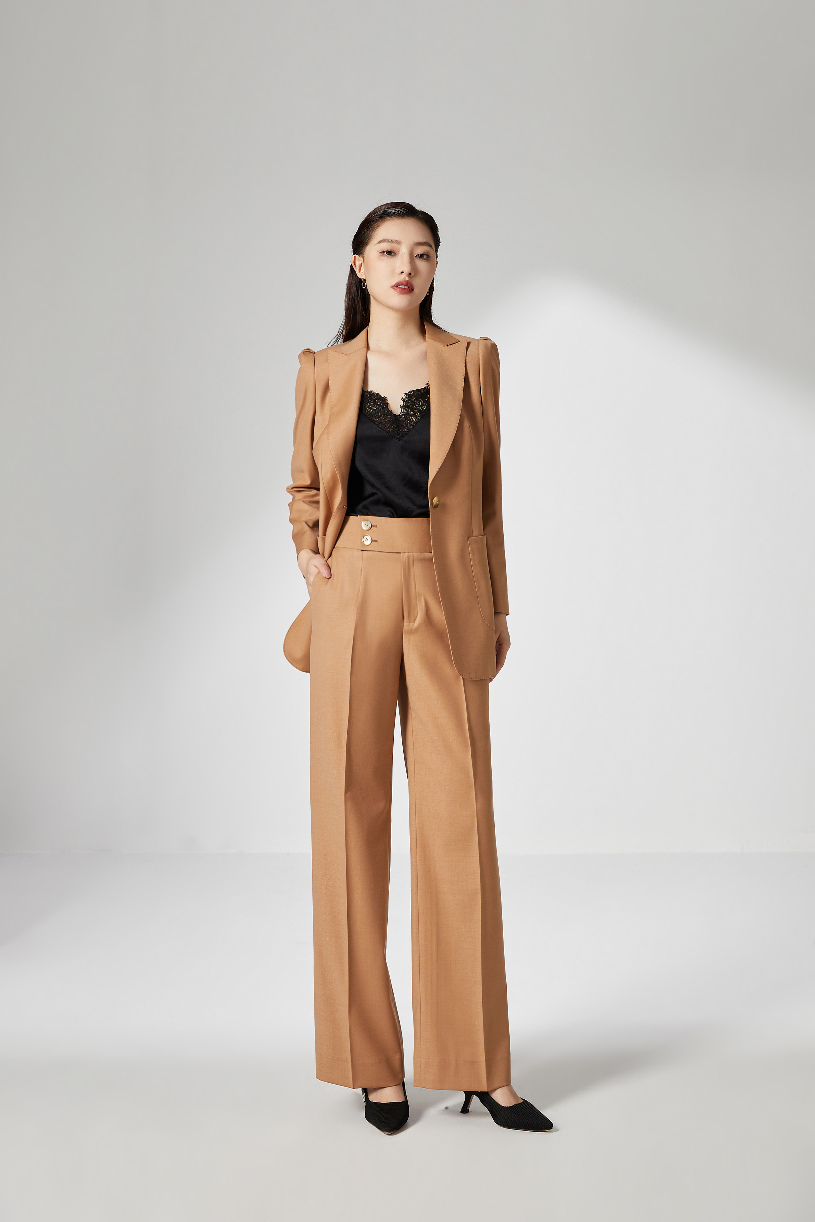 #SC053 泡泡袖高腰两件套