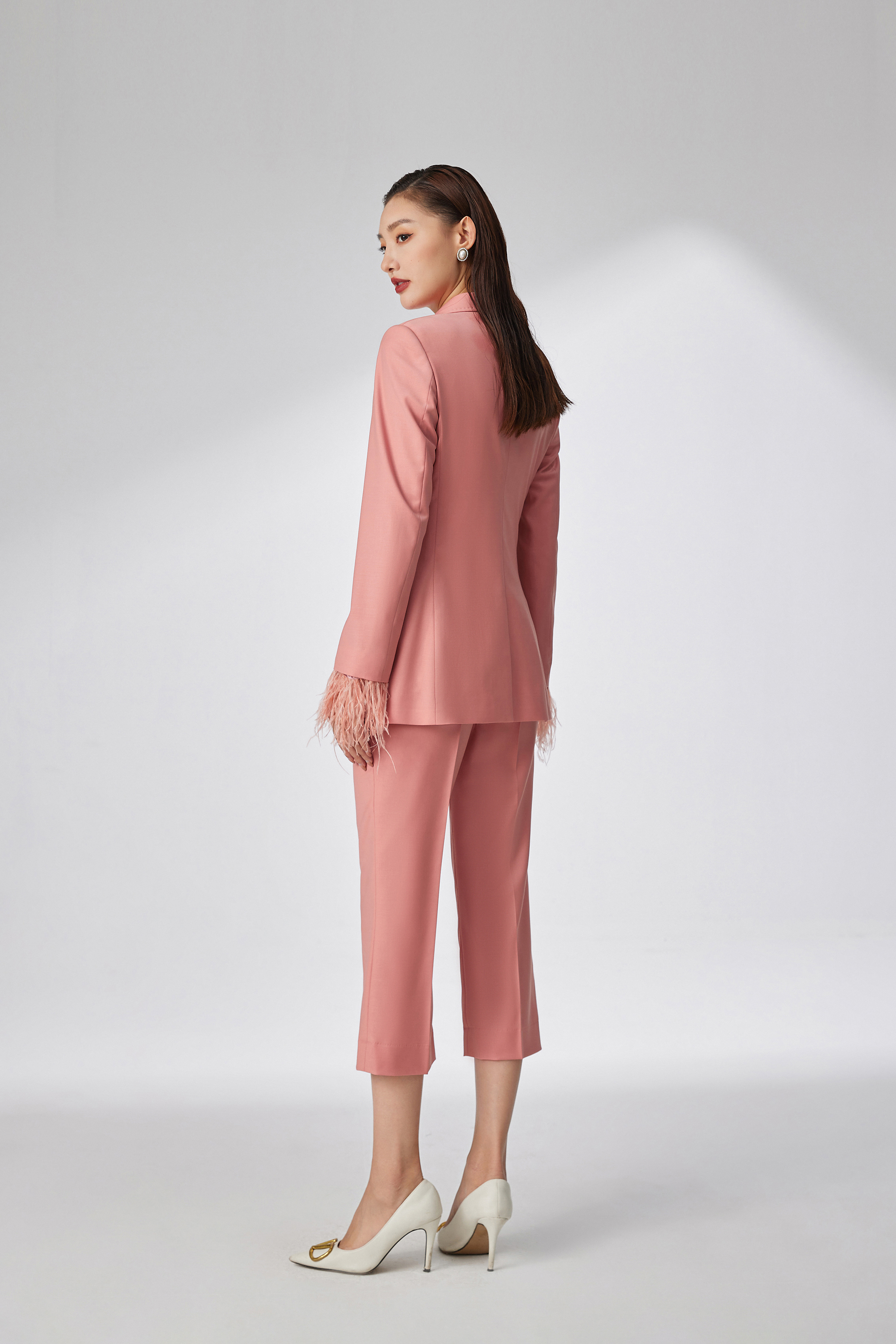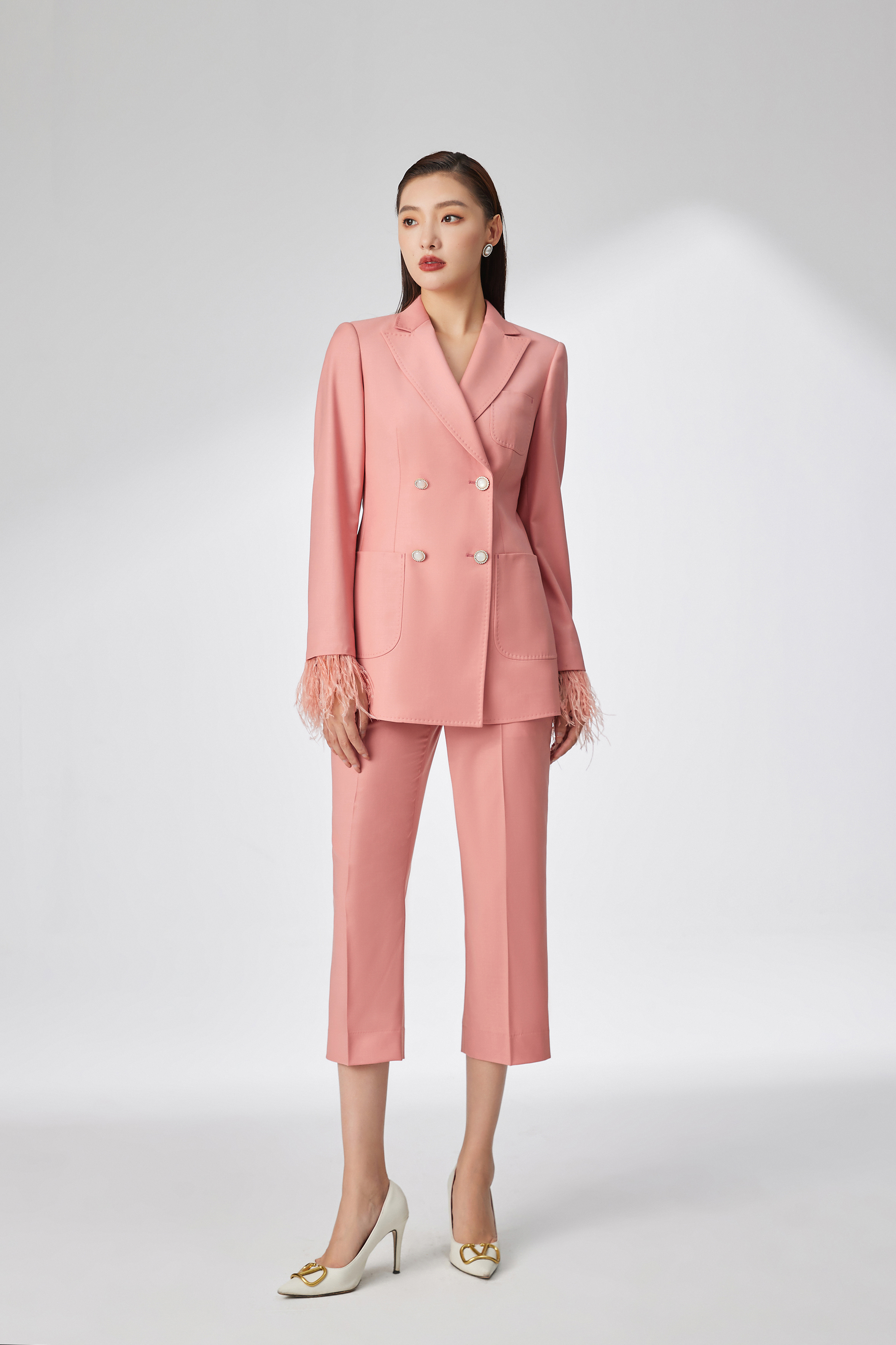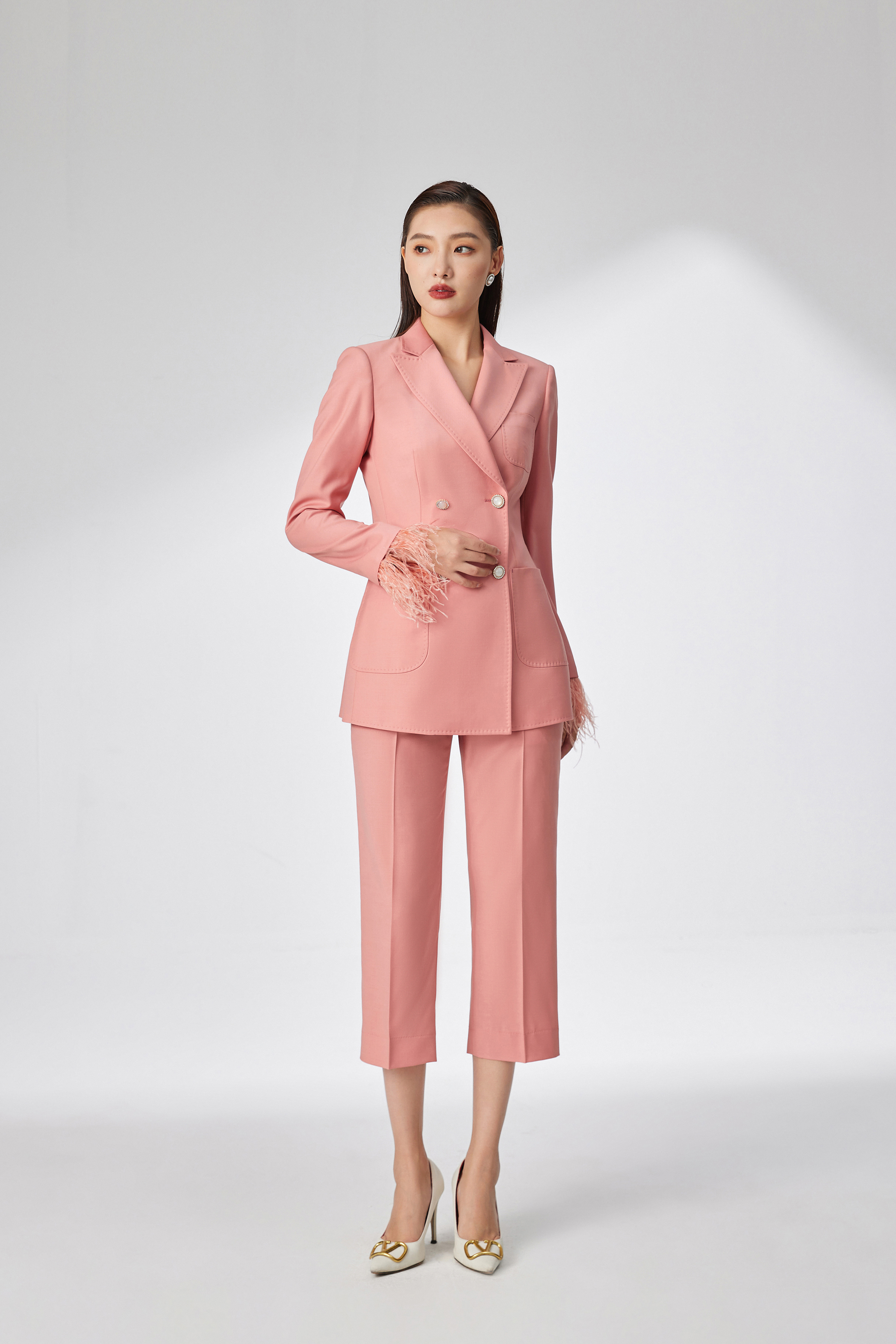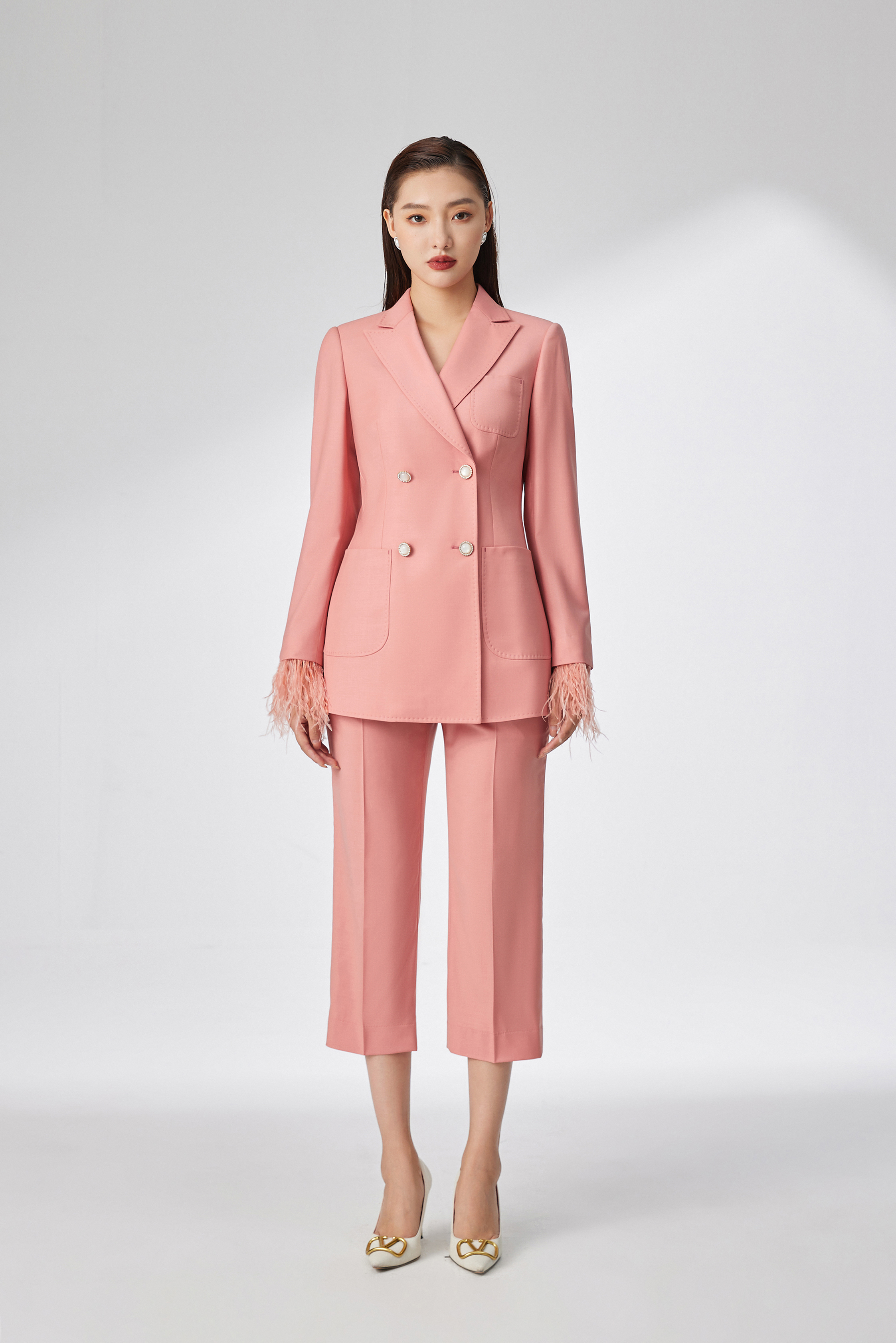 #SC059 拼接羽毛枪驳领两件套