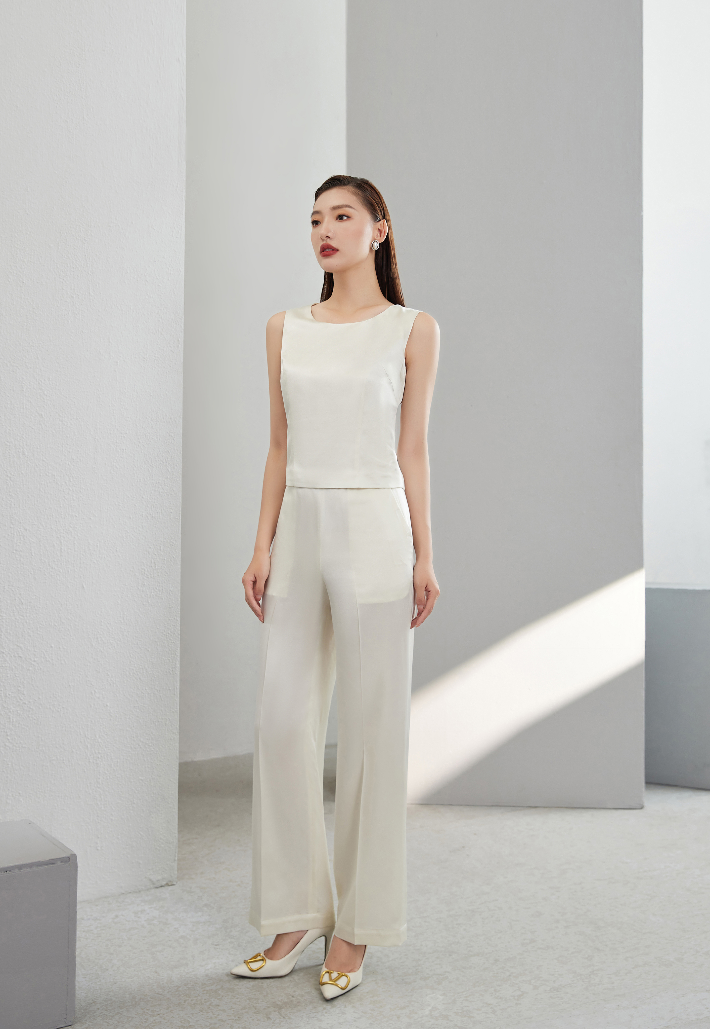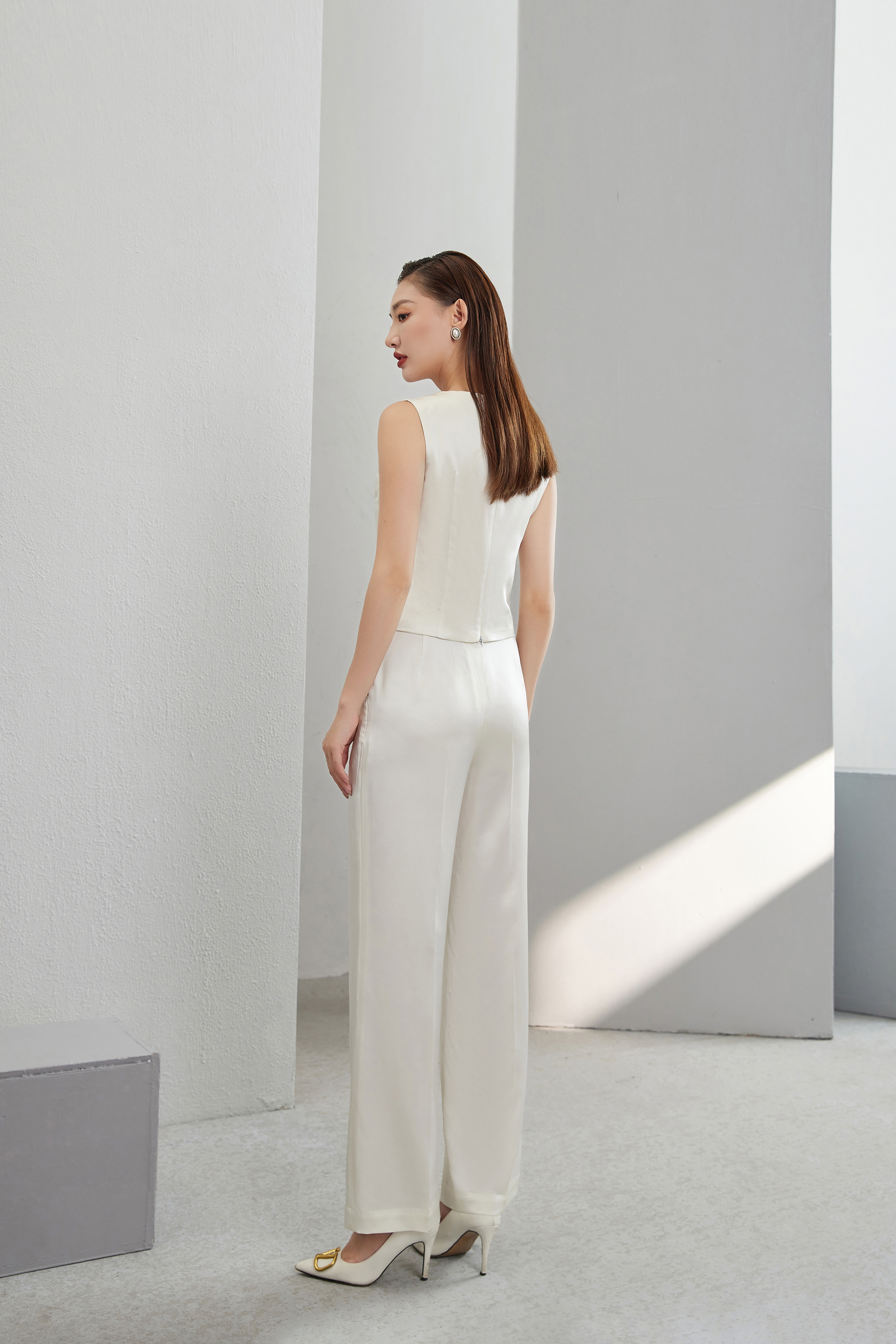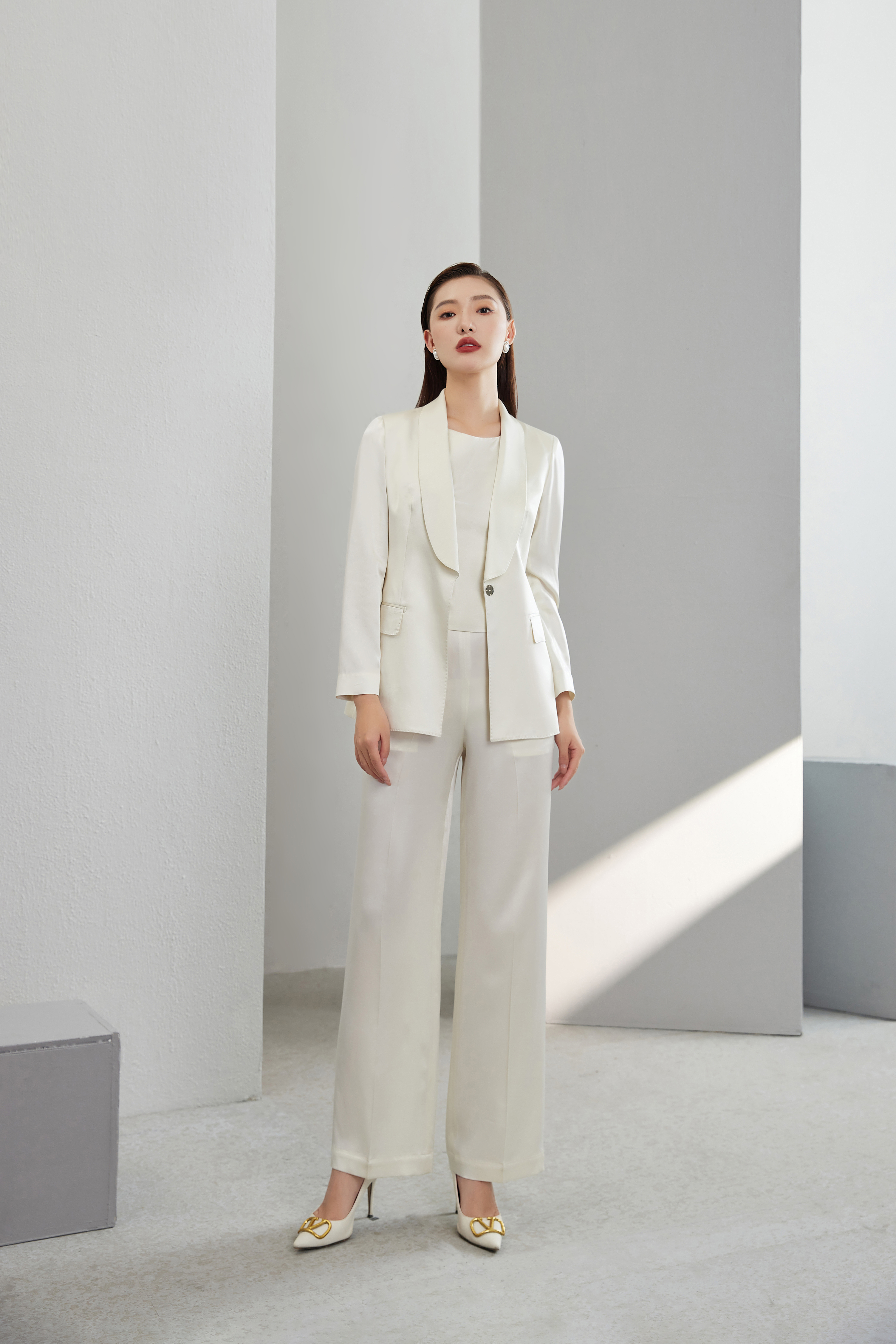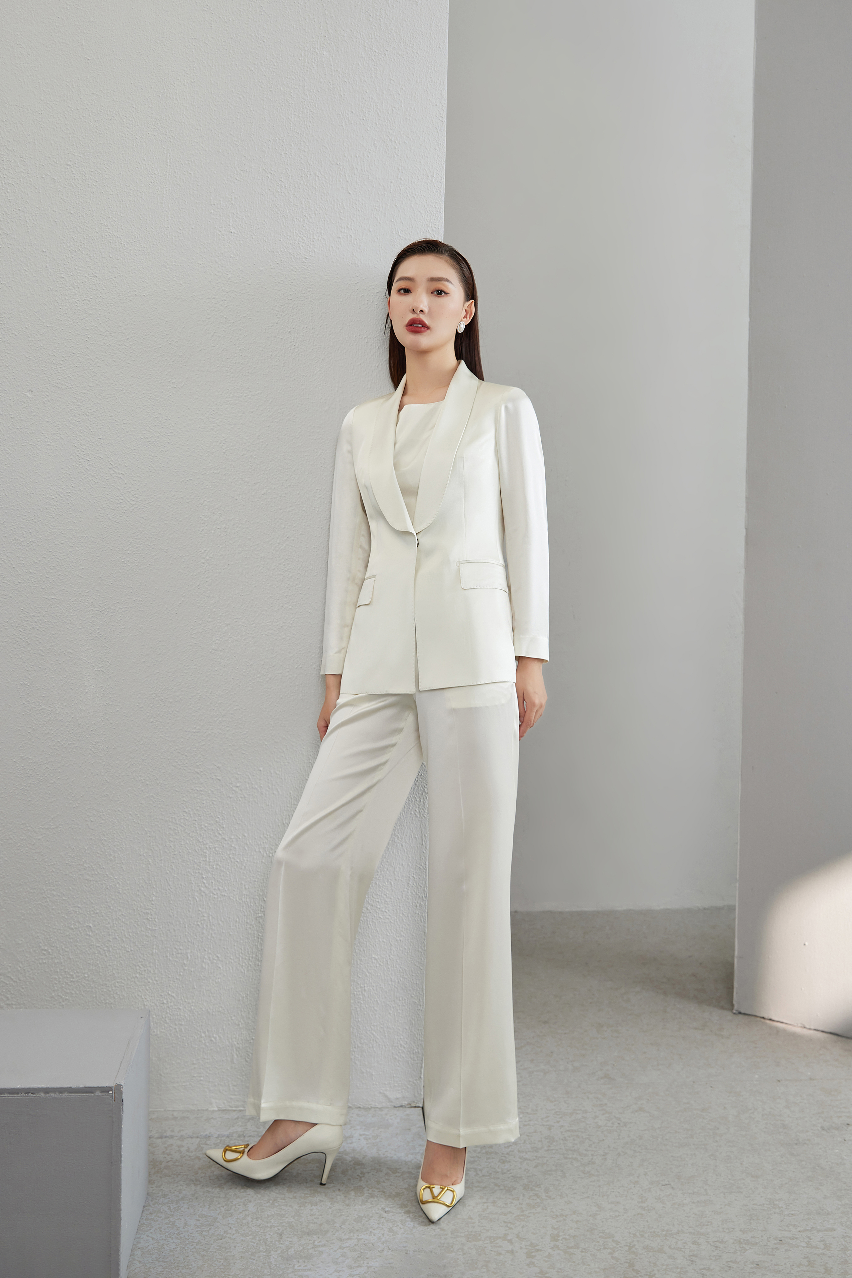 #SC078 青果领真丝三件套
